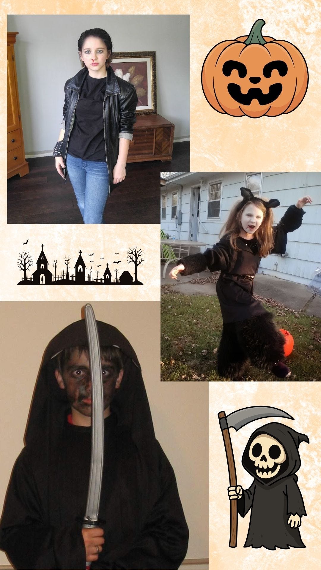 It’s Halloween today so let’s start with looking way back to Halloween costumes of the past. I am not a giant fan of Halloween. Not because I have anything against it. I just really do not enjoy dressing up. Sorry, not sorry. So every year of parenting was a challenge to create what my children, who were all in with costumes, dreamed up and be excited about it. John actually came up with more of their costumes than I did. But, when my mom first became a grandma, in her enthusiasm for the job she sewed elaborate costumes. A mouse, which I think almost every grandchild has worn. We moved the bow tie up to make it a hair bow when for the girls. And then a lion, also worn by most of the grandchildren. Both adorable. Then when he was 3 she went to the Disney store and bought an elaborate and expensive Tigger costume, also worn by most of the grandchildren. And that was the end of grandma costumes. A few years later Jake wanted to be a werewolf so I bought some fur fabric, grabbed some old clothes and brought them over to grandma’s to see if she would resurrect her costume sewing skills to sew the fur into some large holes we would create in his clothes. She tells me she can help me with that and then proceeds to grab a bottle of fabric glue, glue the pieces into the holes, and send me on my way. I was so disillusioned. But 10 years later when my daughter wanted to be a creepy werewolf I was ready with my own bottle of fabric glue to create the costume of her dreams.